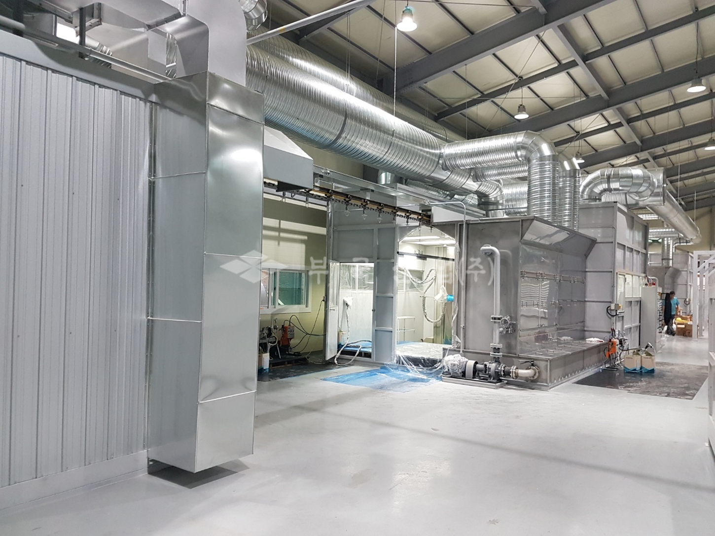 소규모 작업에 적합하고 분사된 도료와 미스트는 안드레아 필터를 사용하여 하부배기 덕트를 통과시킨후 A/C TOWER로 여과포집 시킨후 대기로 배출시킵니다.